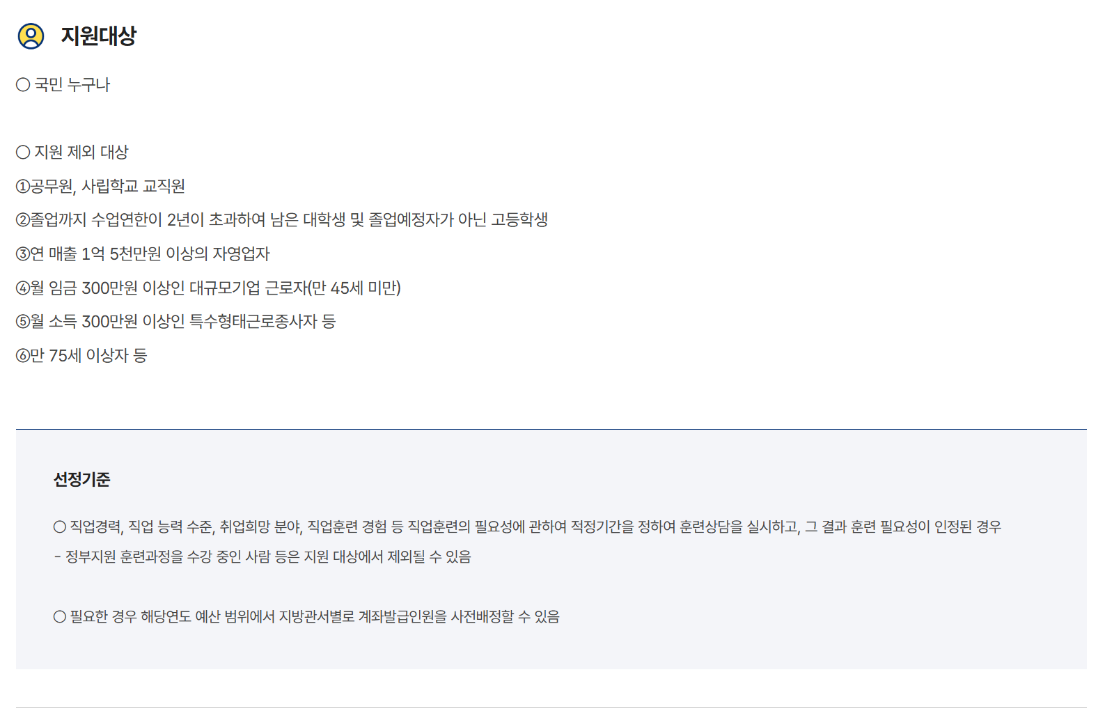 - 본인 부담금: 훈련 과정에 따라 본인 부담금이 발생할 수 있으므로, 신청 전에 확인이 필요합니다.
