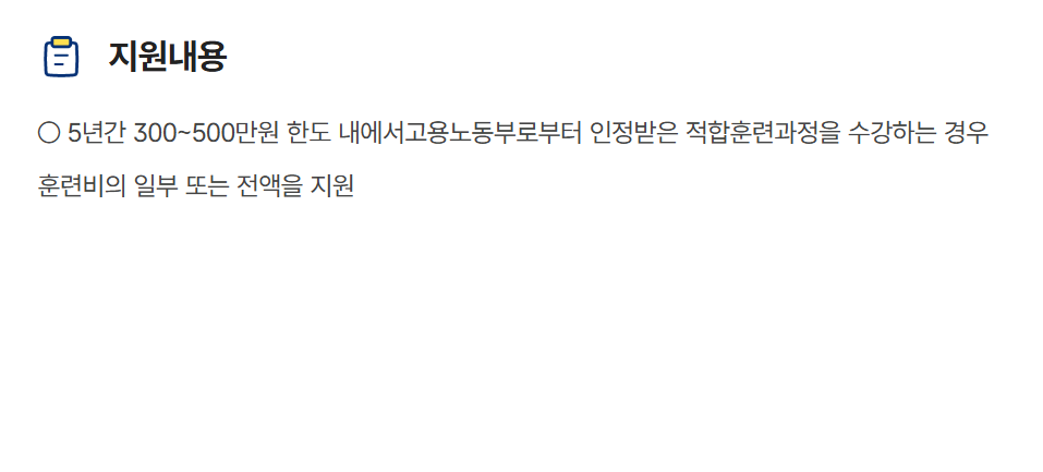 5년간 300만 원에서 최대 500만 원까지 훈련비를 지원받을 수 있으며, 이를 통해 원하는 교육 과정을 수강할 수 있습니다.