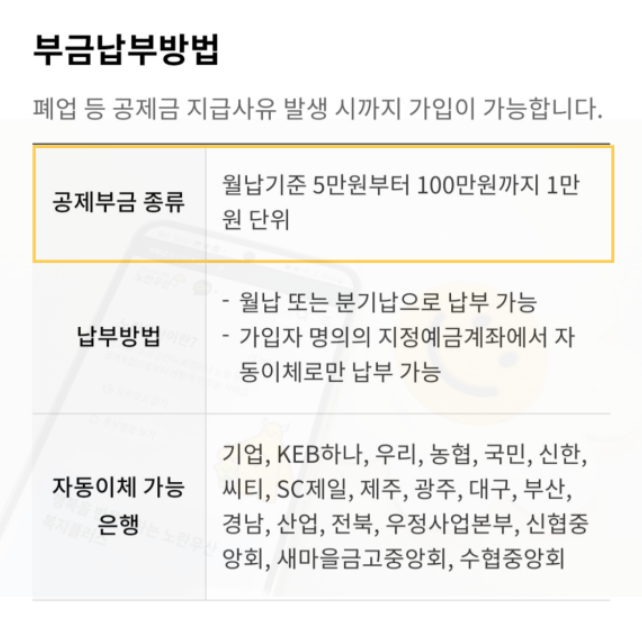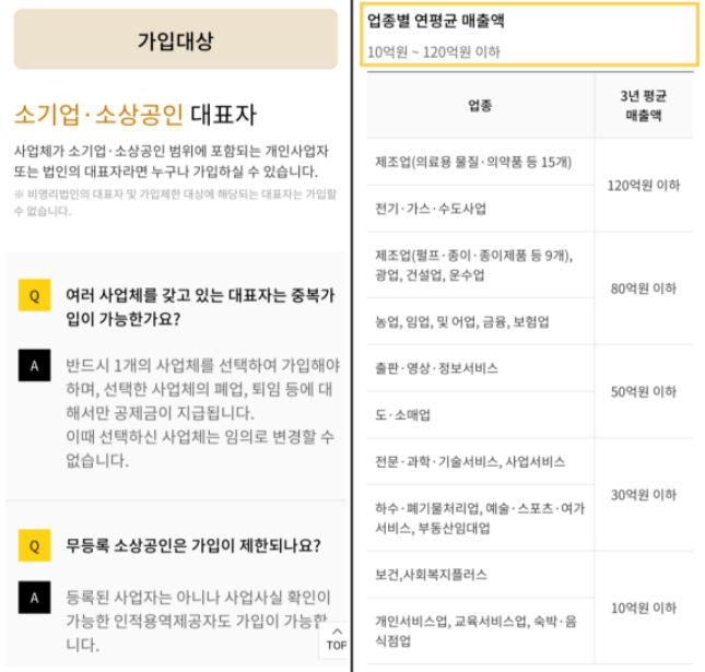 | 가입 가능 대상 | 자영업자, 소상공인 |