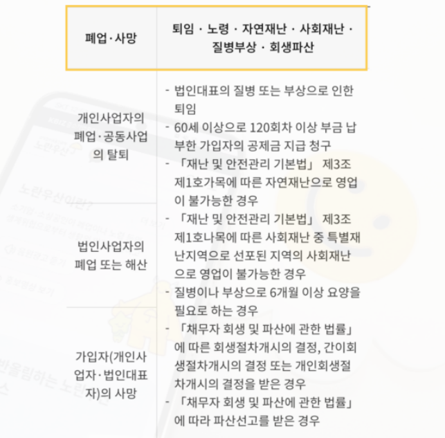 - 폐업 시 공제금 일시금 지급