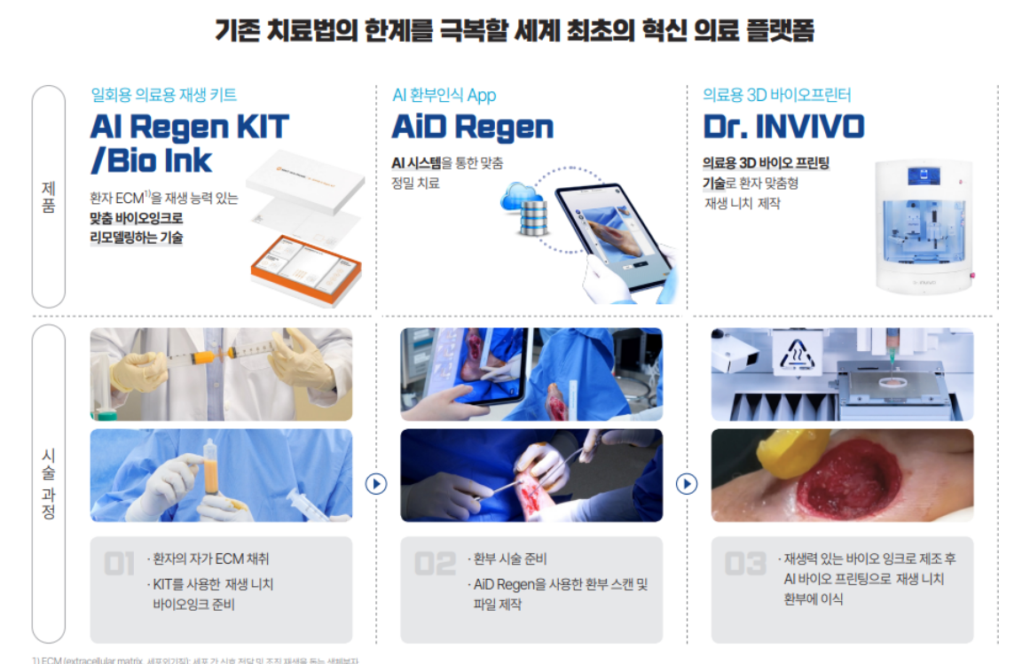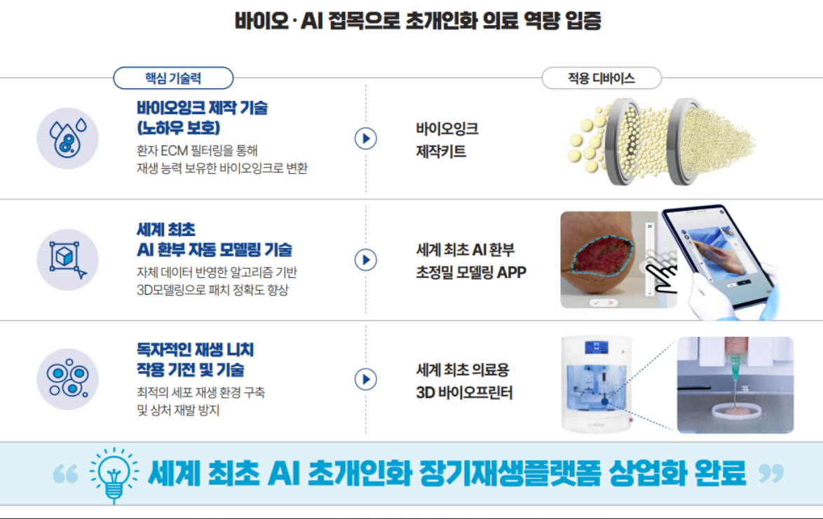 A1. AI 기반 환부 모델링과 3D 바이오프린팅 기술을 활용하여 맞춤형 장기 재생 솔루션을 제공합니다.