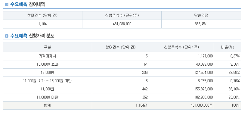 공모가: 11,000원 (희망 공모가 밴드 하단)