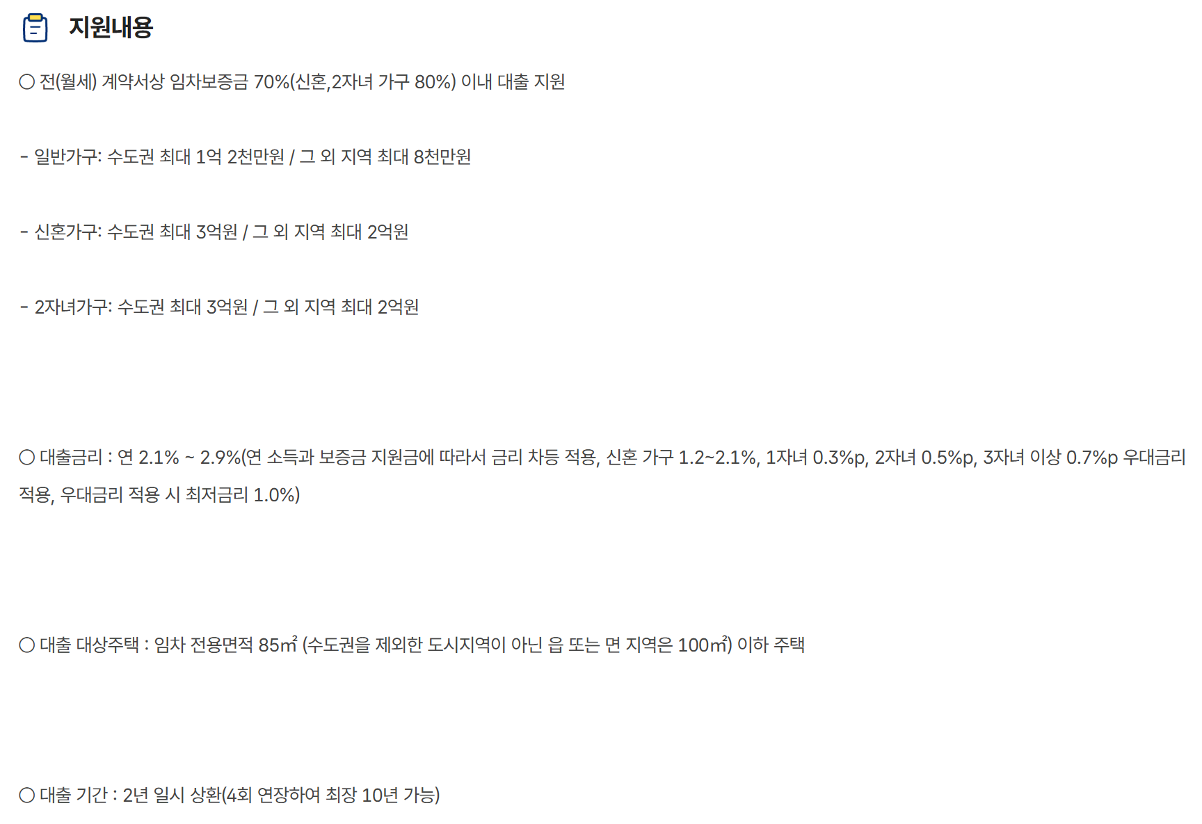 - 금리 (소득 및 보증금에 따라 차등 적용)