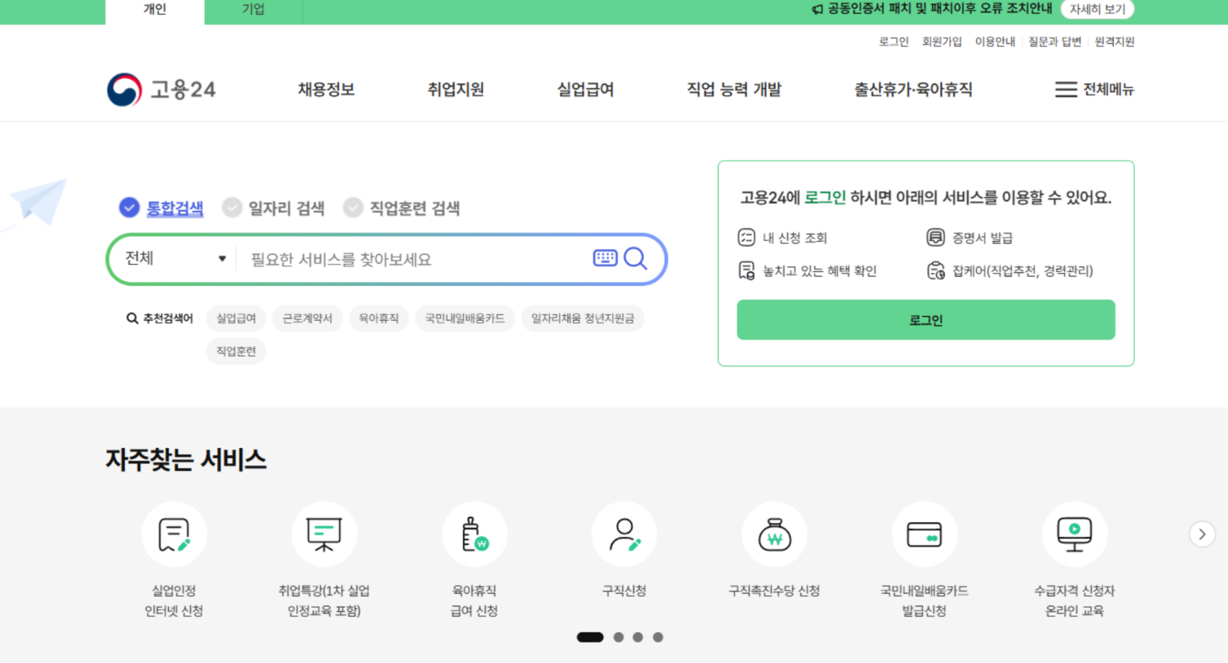 👉 고용보험 홈페이지 www.ei.go.kr